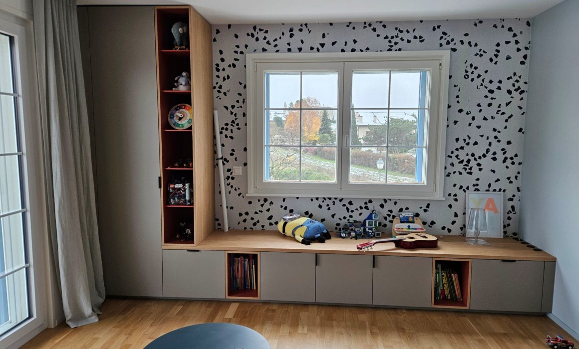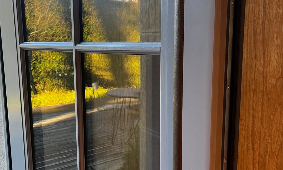 Pour cette élégante villa, notre atelier a conçu et réalisé une porte d’entrée extérieure d’exception, alliant savoir-faire traditionnel et exigences contemporaines. La traverse haute en arc surbaissé confère à l’ensemble une présence architecturale unique, soulignée par un grand vitrage équipé d’un croisillon mouluré réalisé avec précision.